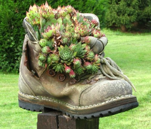 Following pic is not mine but for illustration purpose only (https://thegardeningcook.com/shoe-planters-recyle-your-old-footwear-in-to-garden-planters/)