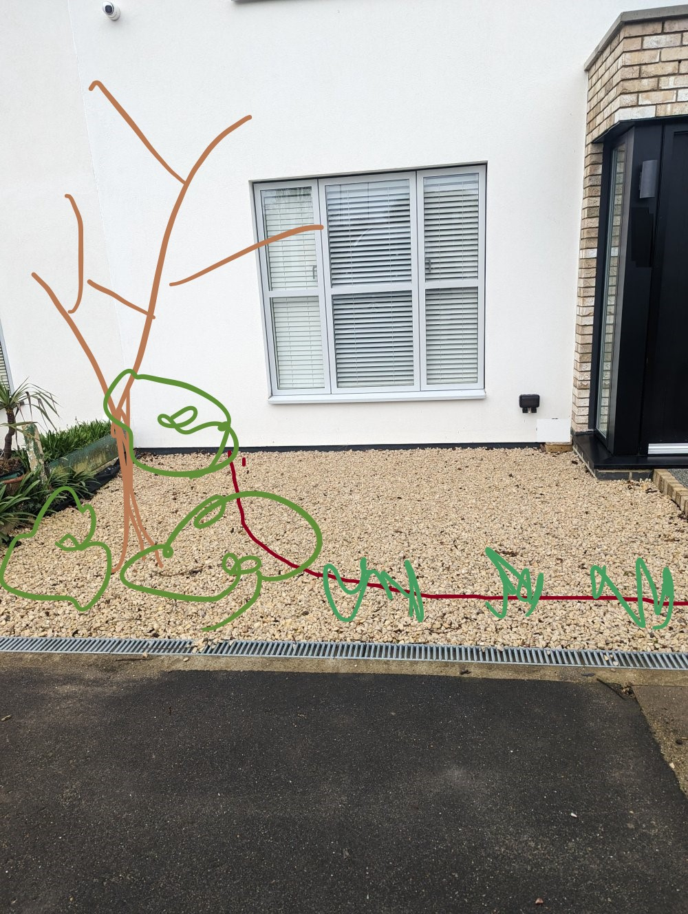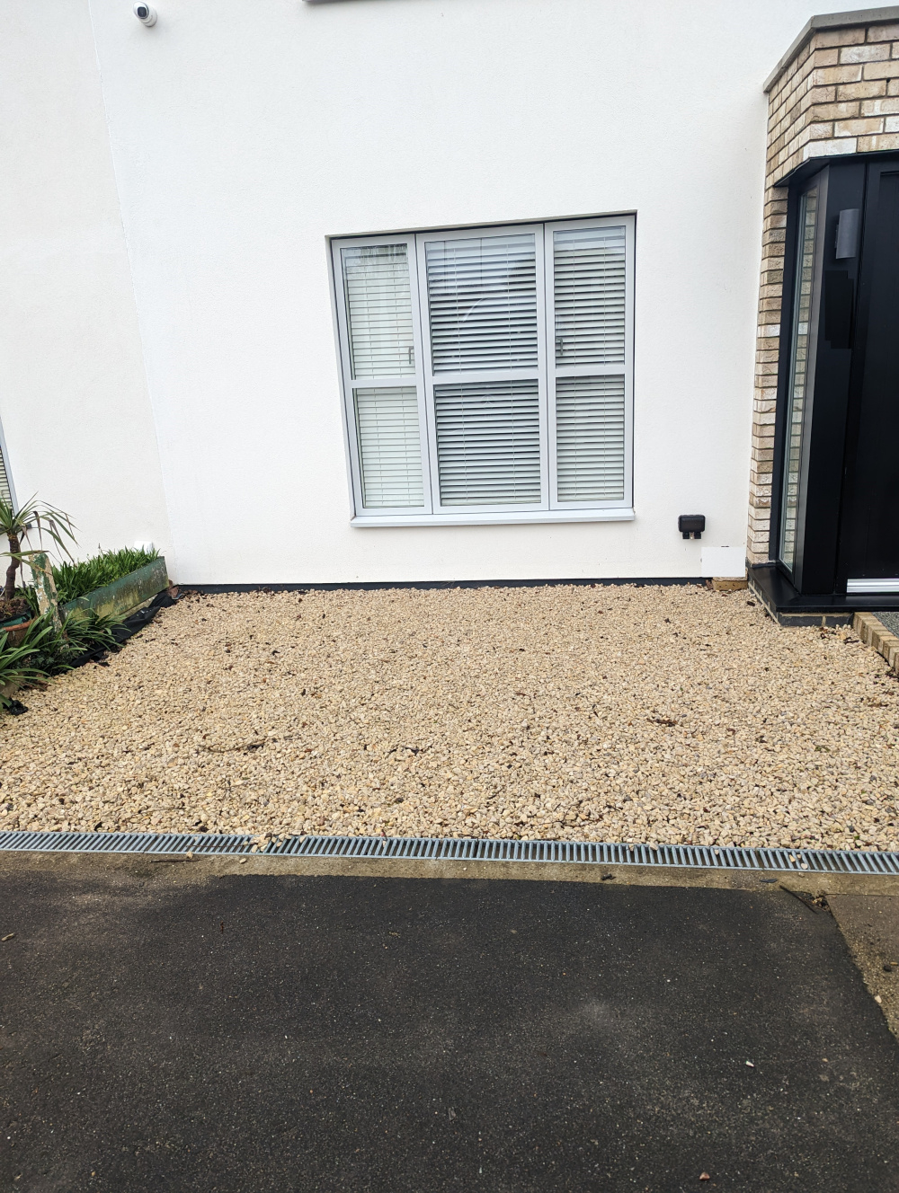 I have a gravel front patio/area which is currently as per the photo attached. I am looking to create some sort of colour/interest in this area because this is very bland at the minute.