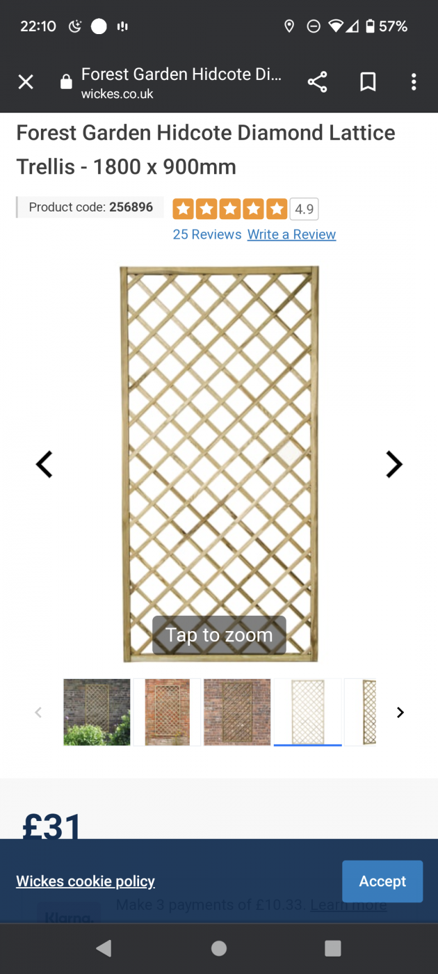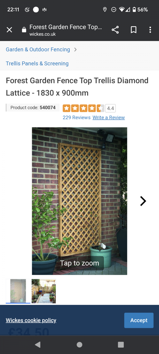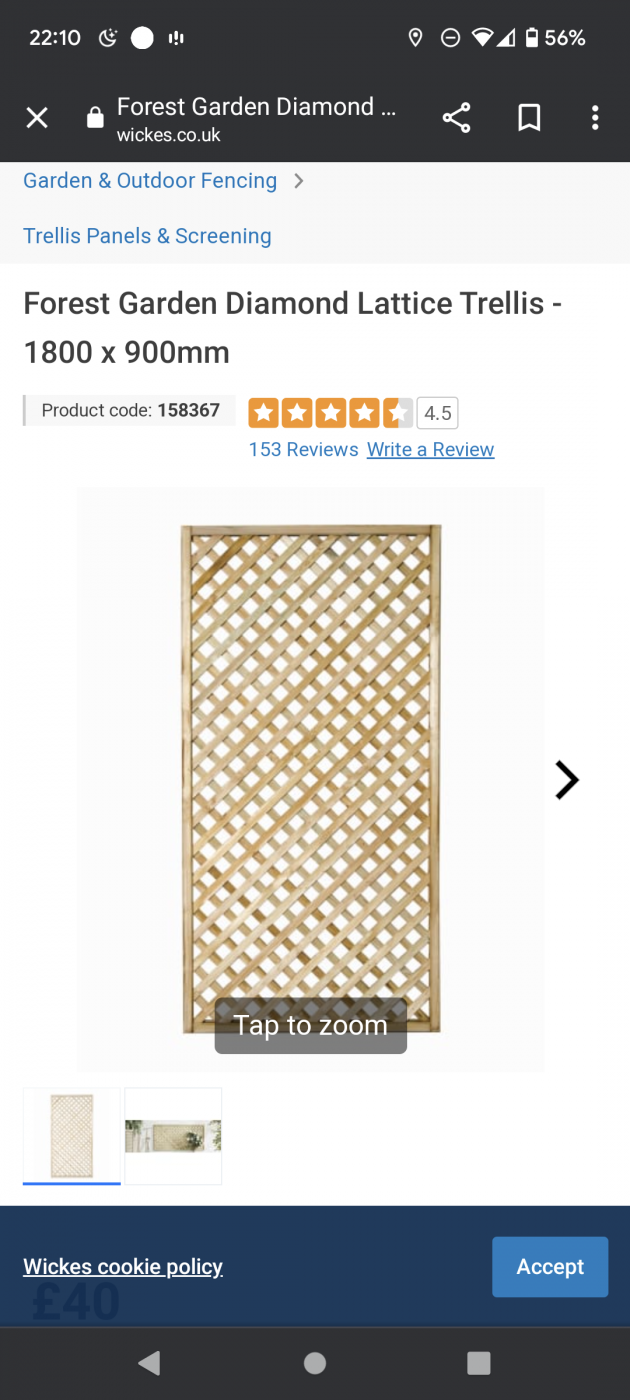 So I've been out looking at some replacement trellis for my 2 climbing roses against the side of the house. Is there any benefit between square and diamond and the size of the holes? I'm having a toss up with these 3 with the preference being the middle one. Slightly more expensive at £40 but think it looks nice. The only difference I can see with the fence top ones is that they look more like a fence panel/rustic.