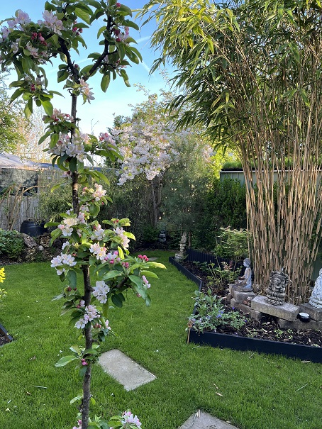 We have a wildlife garden in which my wife scatters her extensive range of bonsai trees. Here is a crab apple tree in full blossom. The tree is about 80 years old and produces small apples each year: