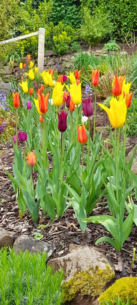 Yes, many @Latimer! I have a dedicated bed of tulips like a river, midway up my sloping bank which is used as a path for weeding after the bulbs have died down. Here's a couple of photos: