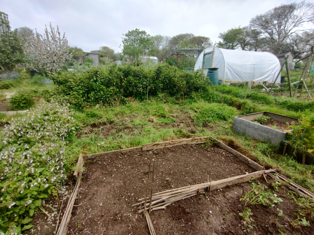 If I had a mini ploughing machine then I would plough the plot in autumn (around October/November time) in preparation for planting in spring. The ploughing action kills off weeds and suppresses surface weed seeds by turning a layer of soil upside down.
