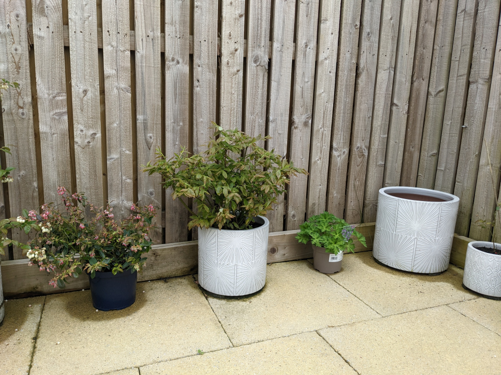 That will be more water retentive too, although you still need decent drainage, so ensure the pots are off the ground if they're staying on that hard surface