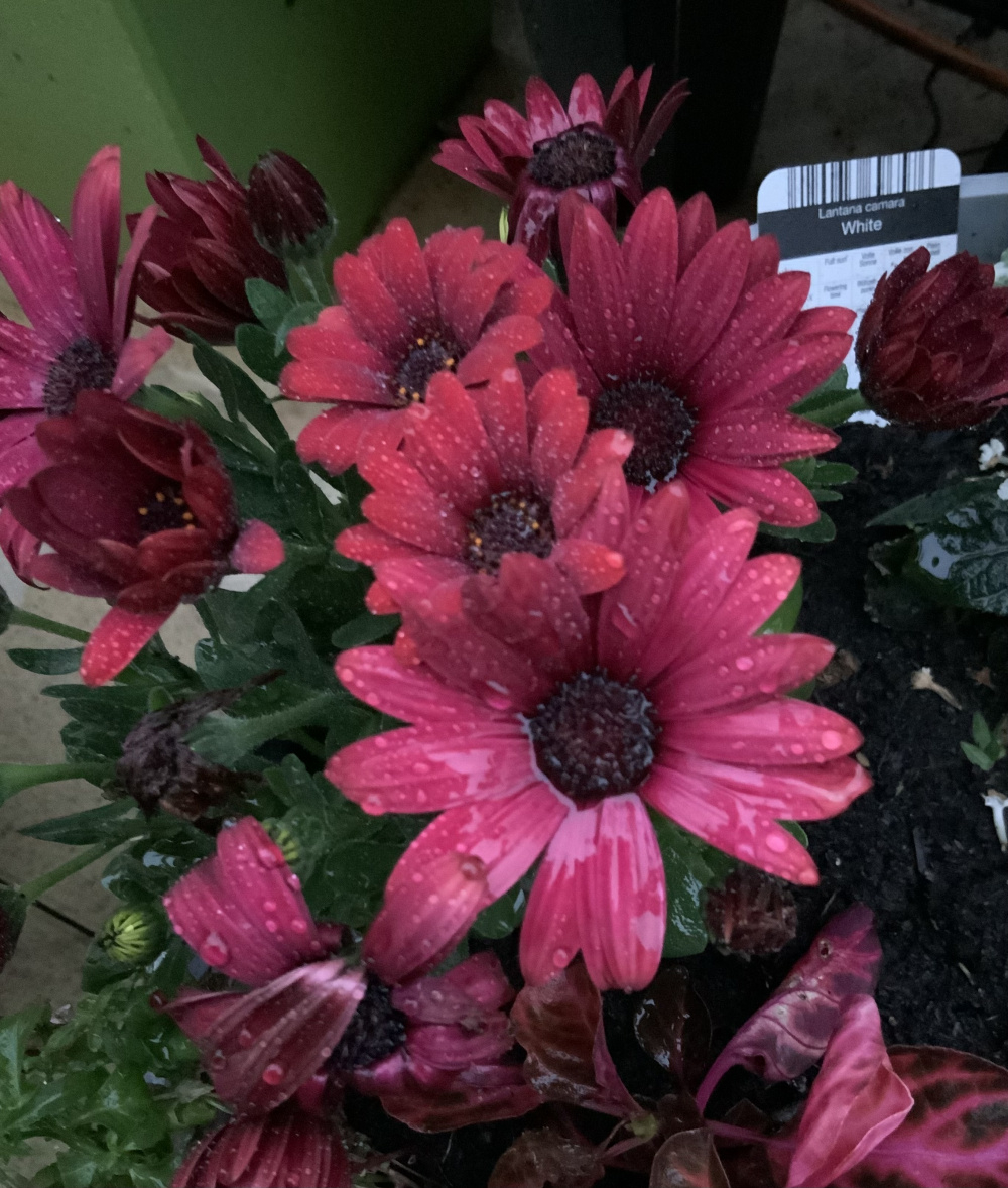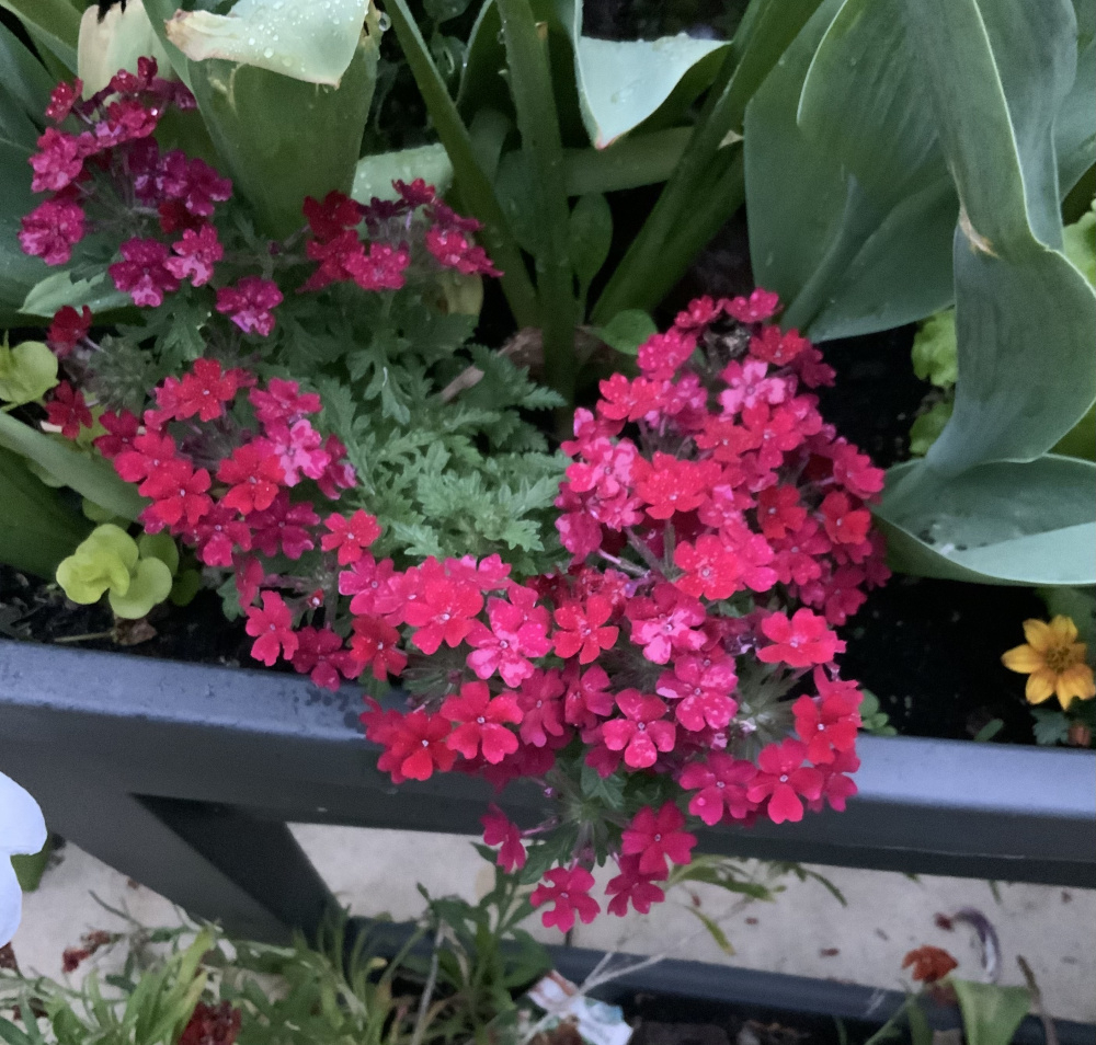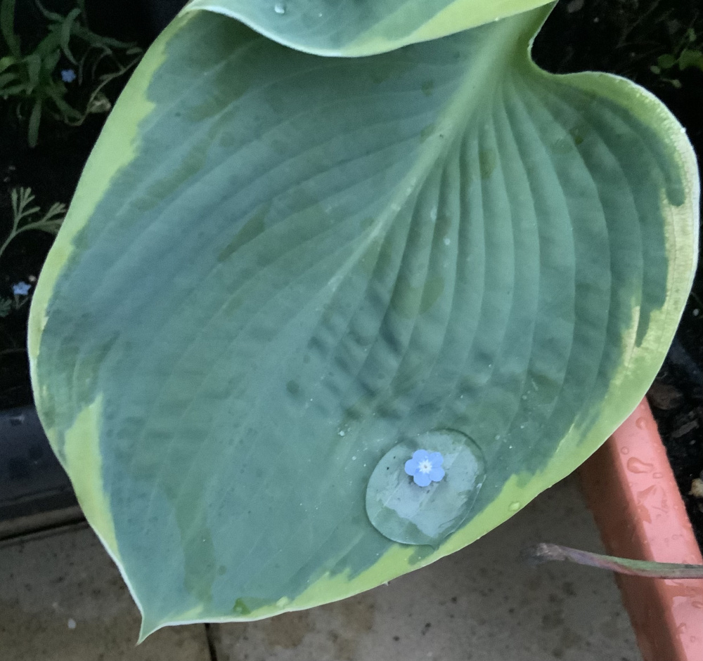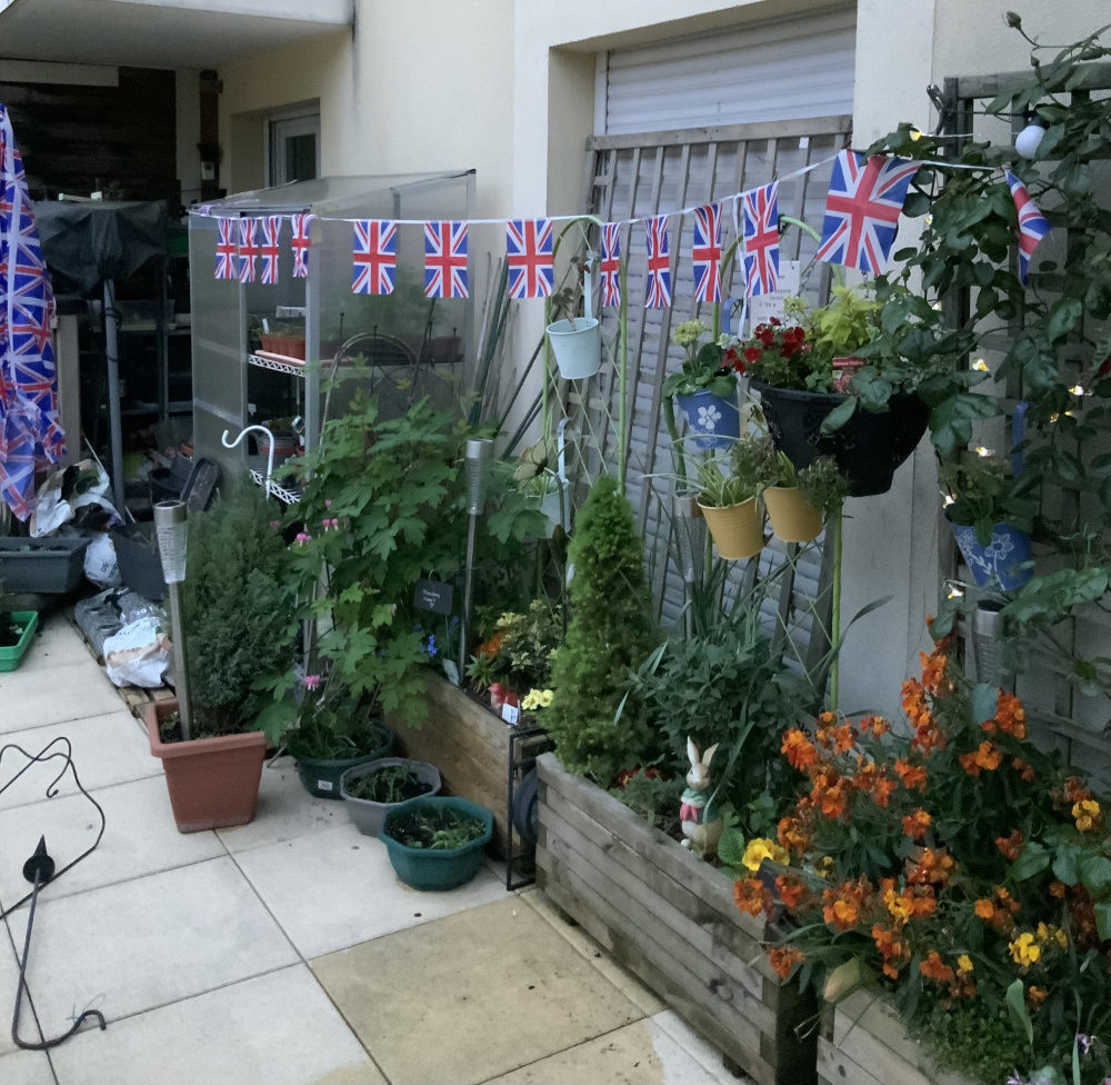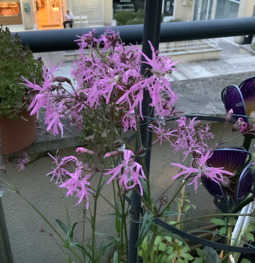I have been sitting outside enjoying some of my little pleasures on the terrace. A little bit of rain falling on some of the plants starting to flower. What are yours?