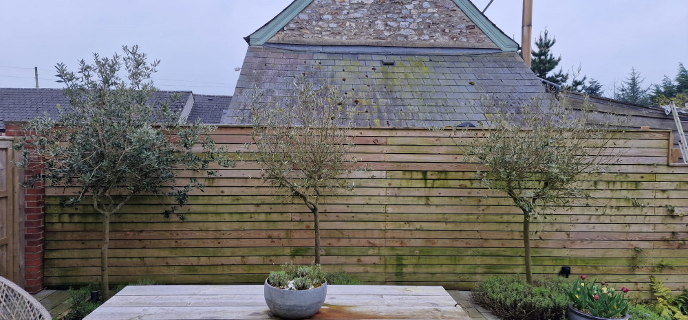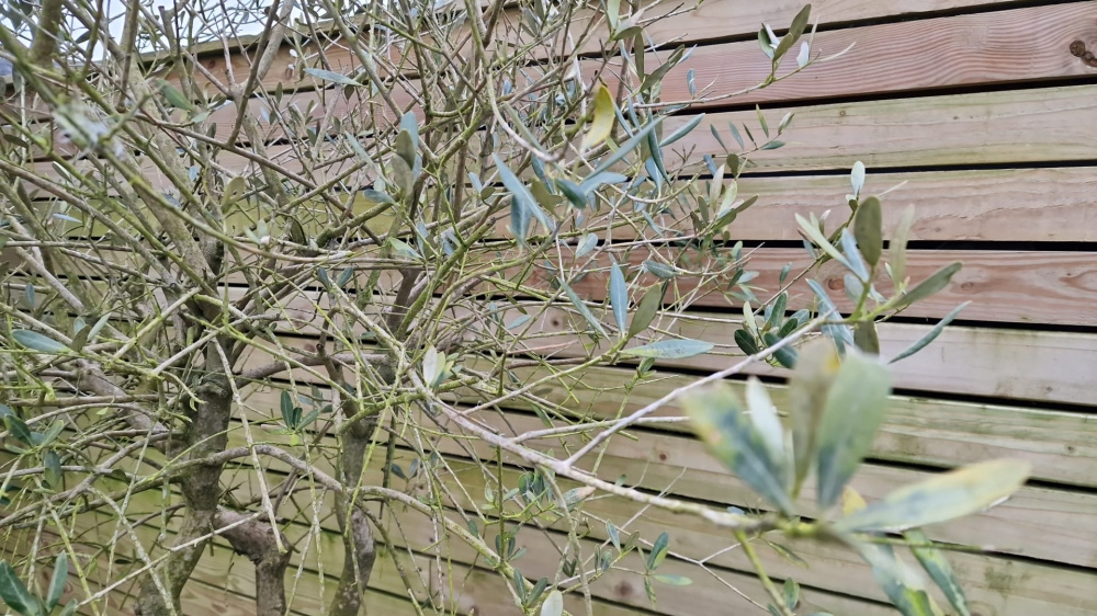 We've got 3 olive trees that have just been in situ for their second winter (East Devon). They've all been growing strongly, are in the same soil and have not been treated any differently. 2 of them (see pics) are looking sad compared to the 3rd one. The 2 have small buds which I am hoping means whatever is wrong isn't terminal. I've had vague comments about something "fungal" but not sure what, if anything, I should be doing.