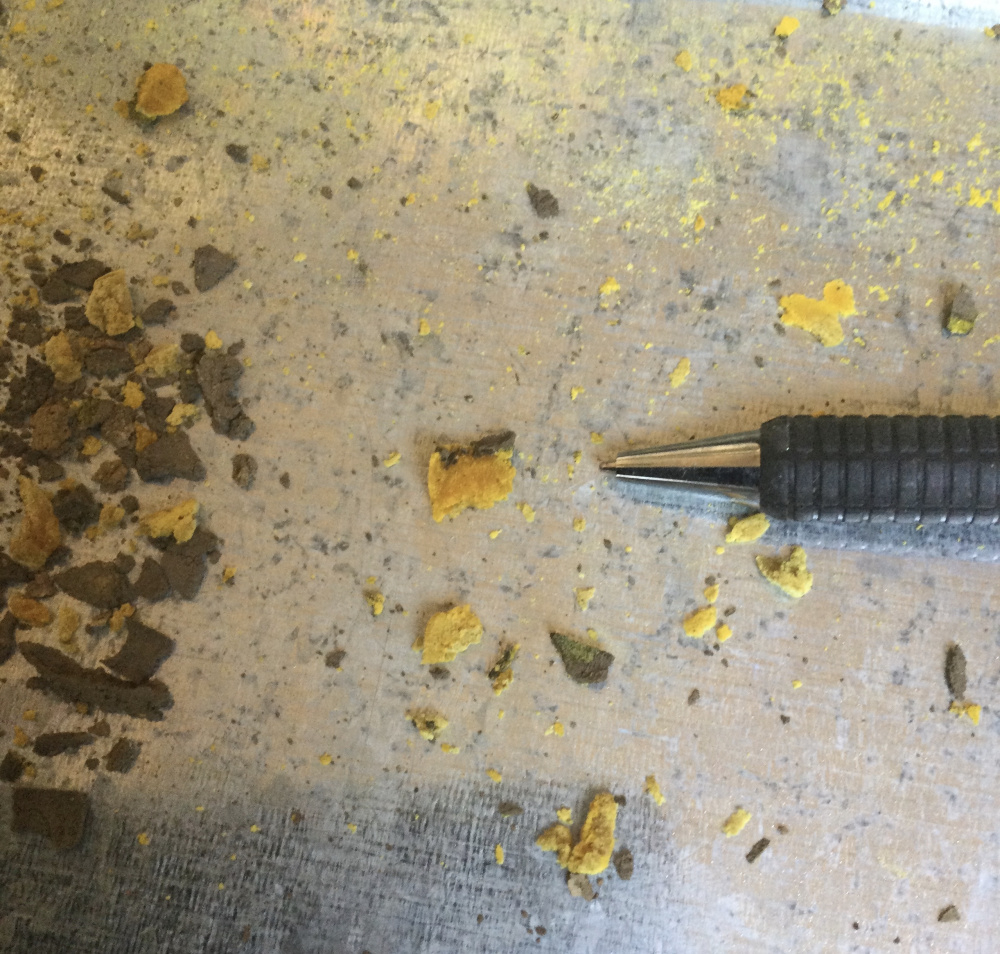 Can anybody identify this, please? Every day when I open the Velux window a teaspoon’s worth of it falls from the window frame onto the shelf below the window. It is very powdery with the colour of honeycomb, making me think it could be bee doings, though some is greyish. Thanks
