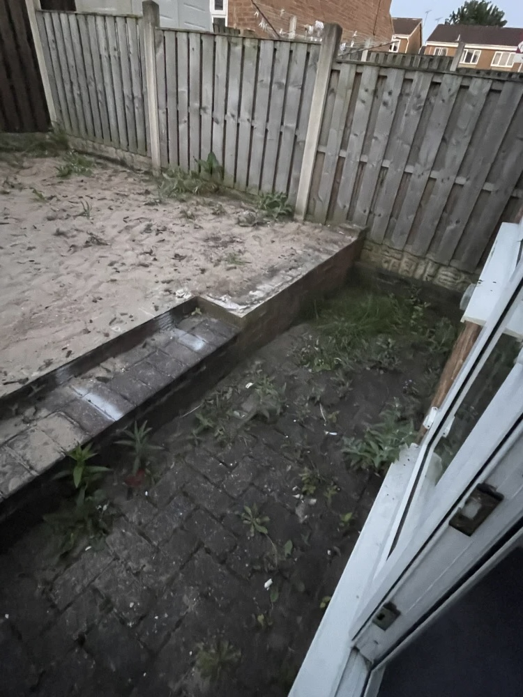 I also have my path area that I need advice on drainage… it slopes down to the right and always puddles and takes days to drain away. Can’t really use aco drains due to a step out of the conservatory being in the way. (I’ll post a pic aswell)