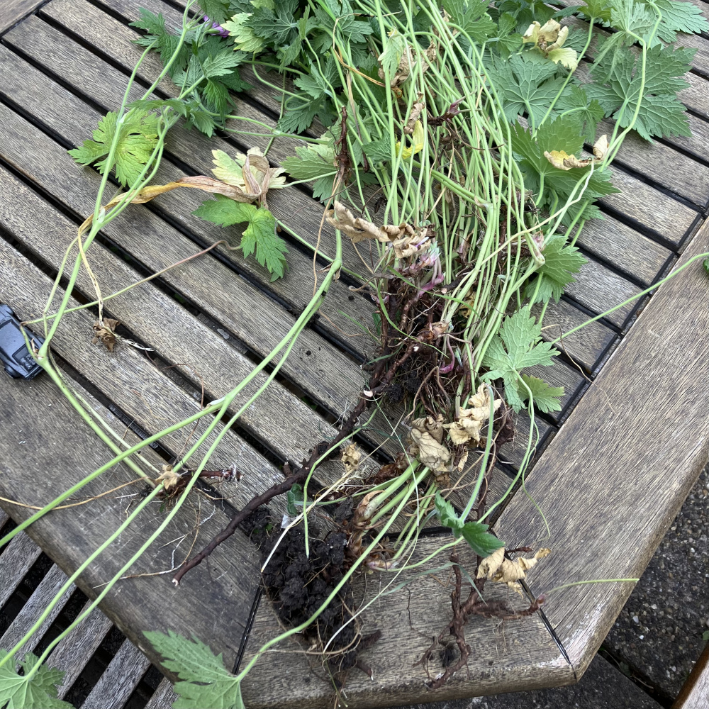 Don't bury deeper, but you can cut them back a little so that the roots can cope more easily. Most geraniums are pretty forgiving though