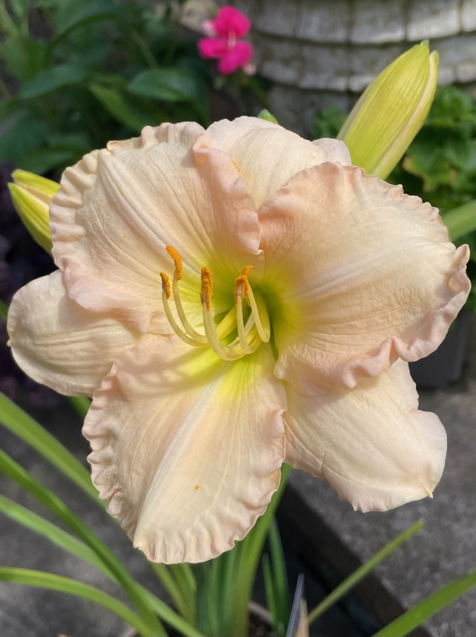 I found this hemerocallis in a half price sale at the garden centre, it’s so root bound that the pot is bulging out. I’m sure it will be alright once repotted. Longfields Beauty