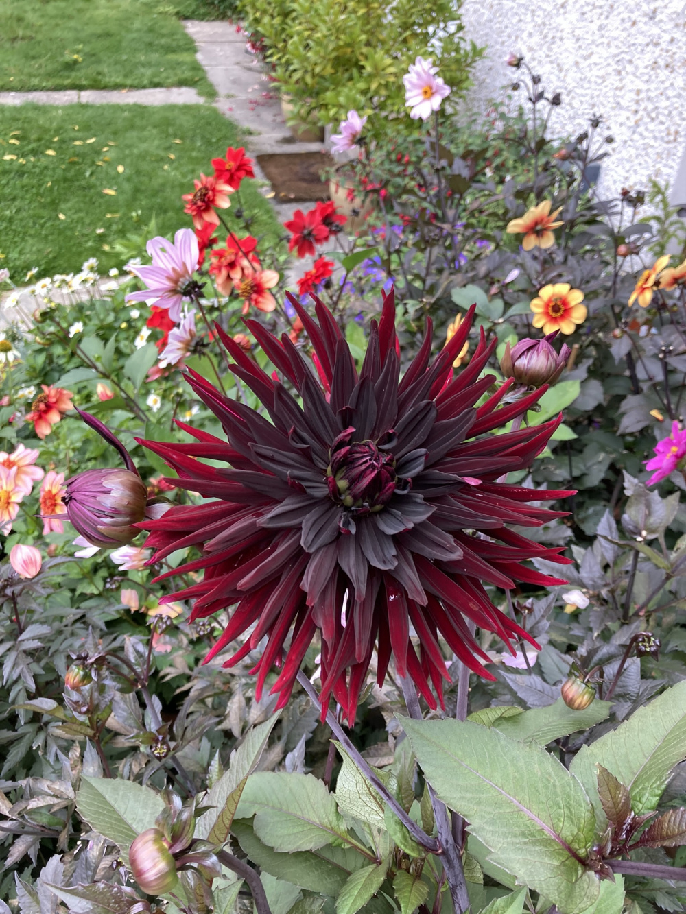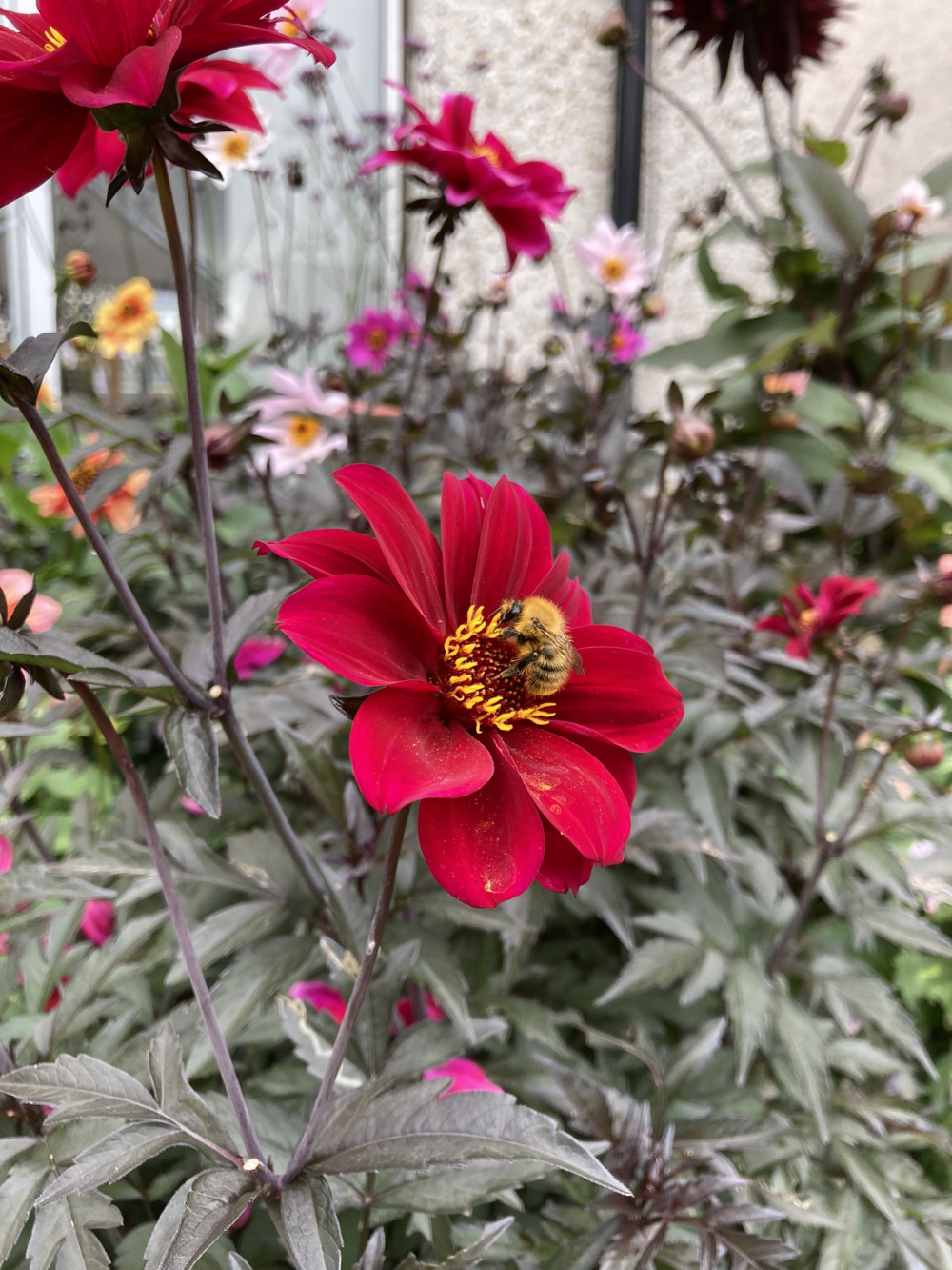 Bishop of Llandaff amongst the Cafe au Lait blooms.