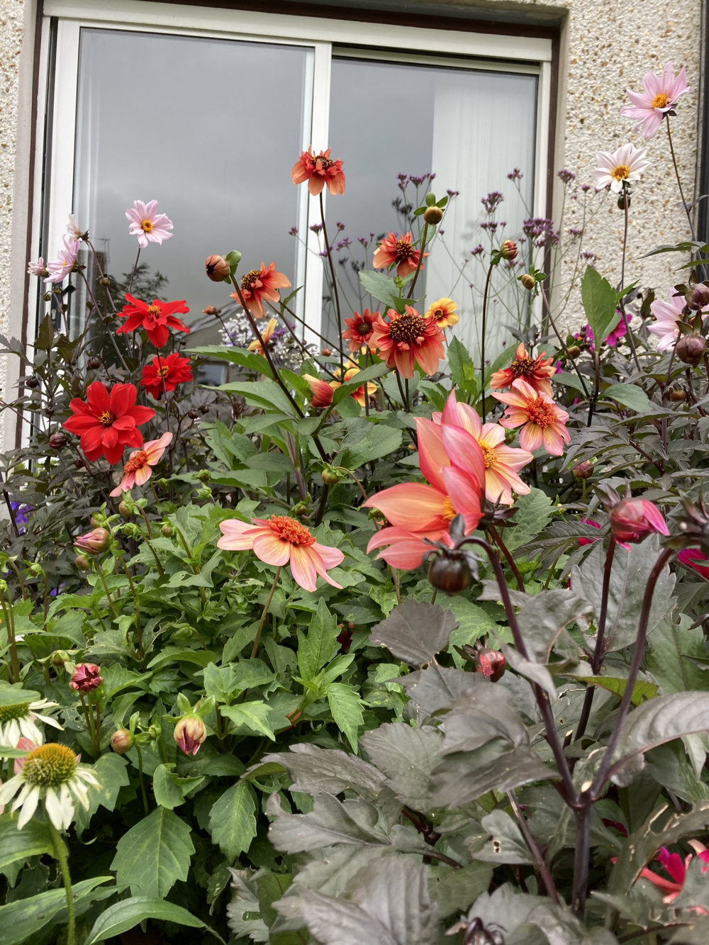 Waltzing Matilda paired well with a dusky pink daylily and now that is nearly over has teamed up with Crocosmia Carmin Brilliant to carry things on into autumn