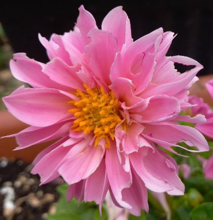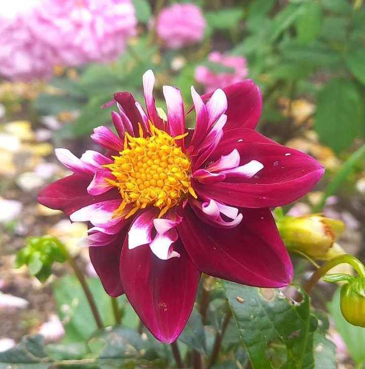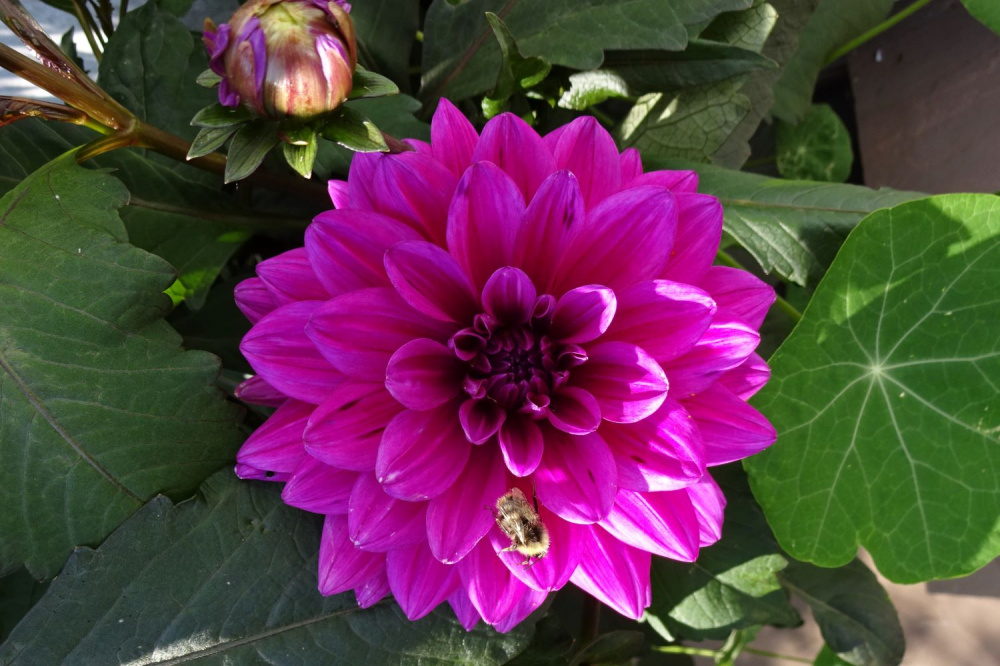 Very happy that this tiny tuber overwintered... it was a seedling from the darker purple Night Butterfly last year. I don't have much real red in the garden otherwise unfortunately. Its parent, Frustratingly, many blooms are getting instantly eaten by snails this year, whether the plants are in the ground or potted. apart from this one (which might be a Sarasota Joy one)- they even leave the leaves alone! Time to plant some more sacrificial hostas and marigolds I suppose!