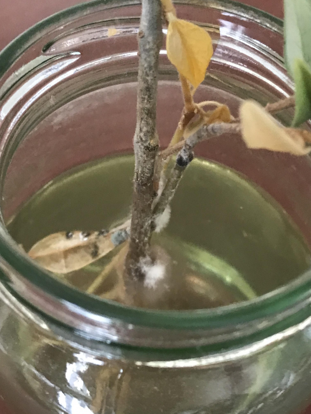 but not the Hoya. looking at the jars they're in, i can see one has some mould at the top of the water, which explains that one...
