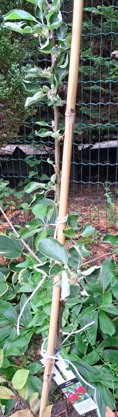 Dear all, looking for some advice on two young apple trees that were planted earlier in the year. I have a Starline Garden Fountain apple tree, it was quite happy but not many of the branches and leaves appear to be withering. On examination, it looks like something (perhaps a squirrel) has damaged part of the trunk, and branches below the point of damage/scratching are doing well. Appreciate any advice on whether I should be cutting the tree to the point of the damage (and if so if I should wait until winter/dormant season), or if I should just leave it.