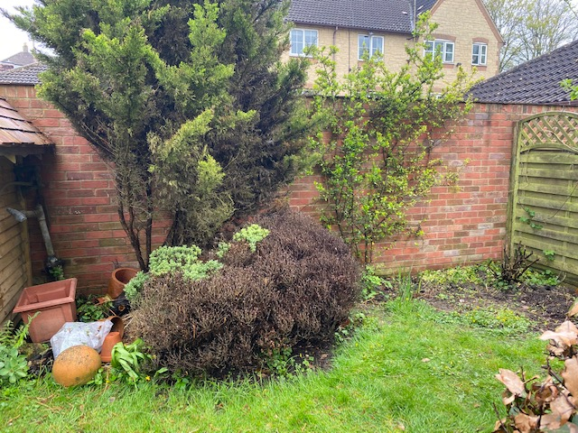 I am struggling to decide on a good replacement plant for my large hebe topararia that died in the winter (see 1st photo). I also had a lycesteria (in the corner next to the fence) that also died. THe lycesteria was replaced with a fatsia that is more hardy, but what could i replace the hebe?? It is on a north facing wall aspect. Soil is quite fertile Ph 7.3 moist/well drained. My ideas so far are:
