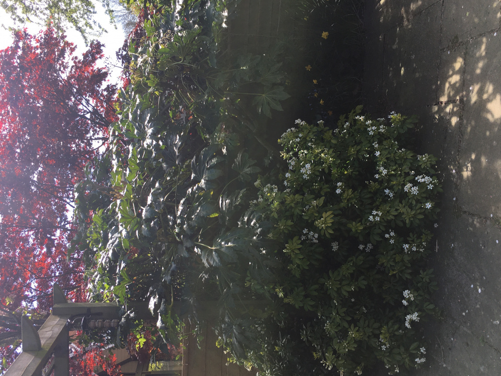 small acer, another hebe, phaeum palmatum.