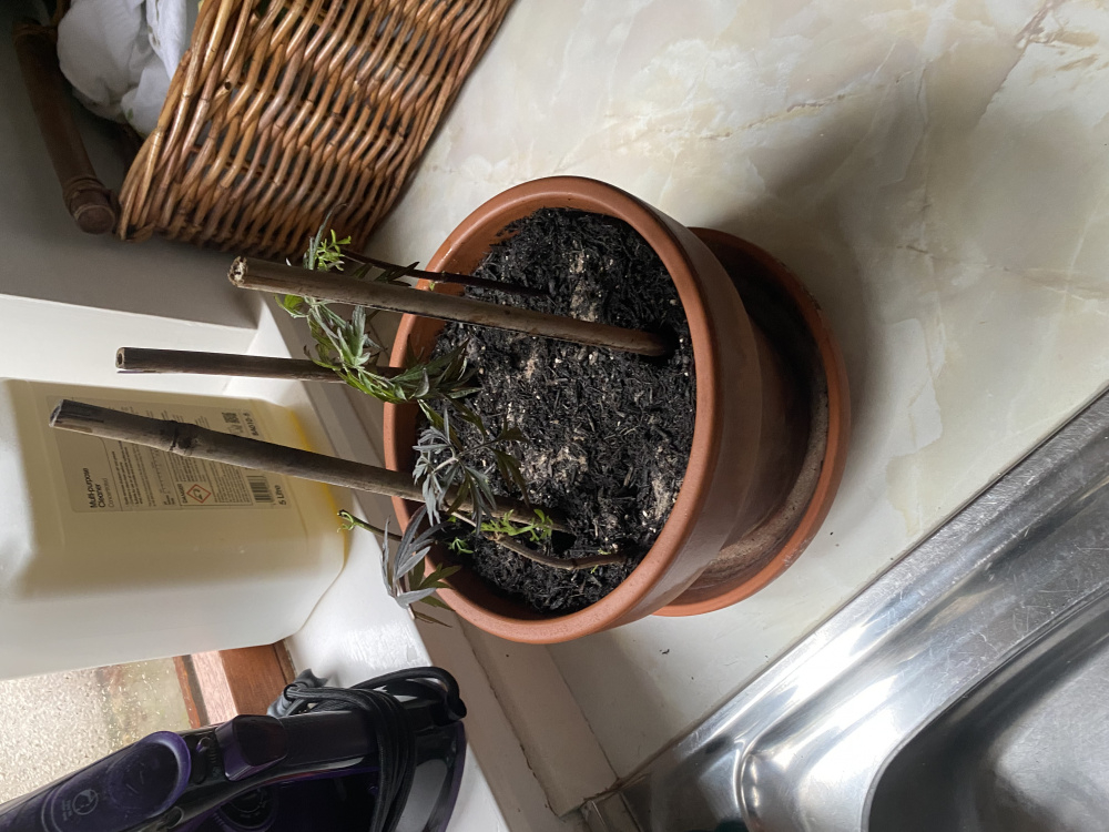 It would have been better to have the cuttings in a smaller pot.