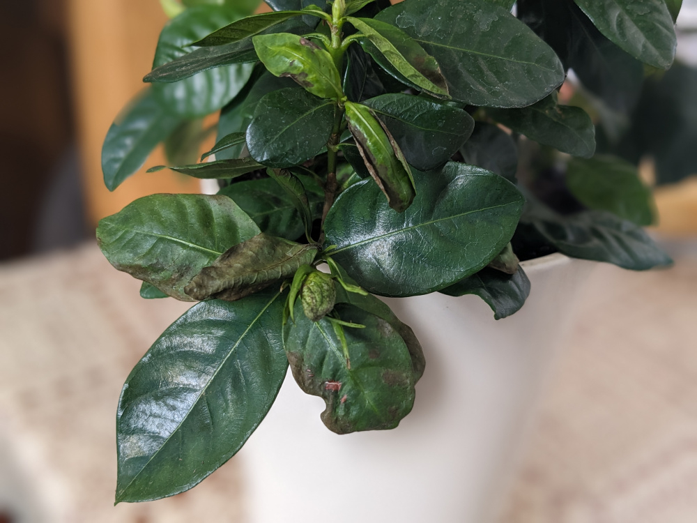 I need some assistance in identifying what the issue is with my indoor gardenia plant, as you will see from the images below. I am currently based in the UK living in the South West region.