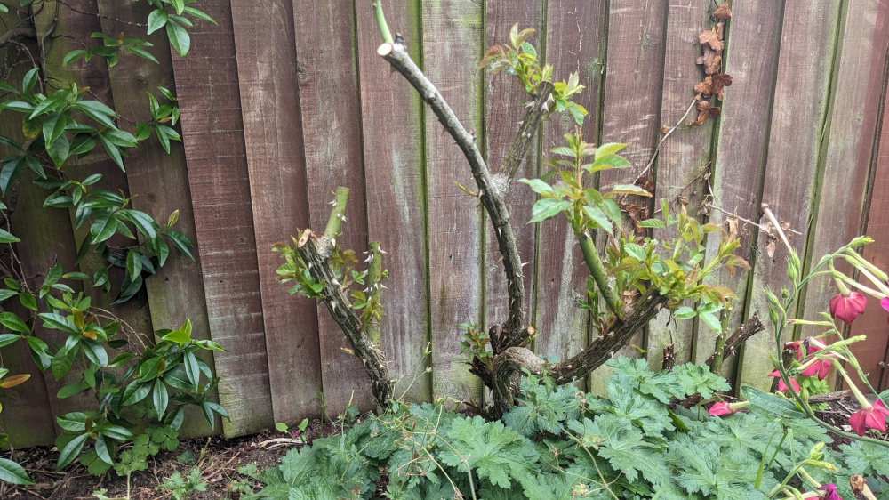 Looks great, fortune favours the brave, we hope! Seeing it now done I would be tempted to go just a wee bit further.. trim right back the longer brown cut stumps to about a cm and thin the congested canes on the right to leave just the three green canes. Maybe even remove the thickest green stem in the centre of the left hand clump as it’s crossing two others and probably rubbing against them.