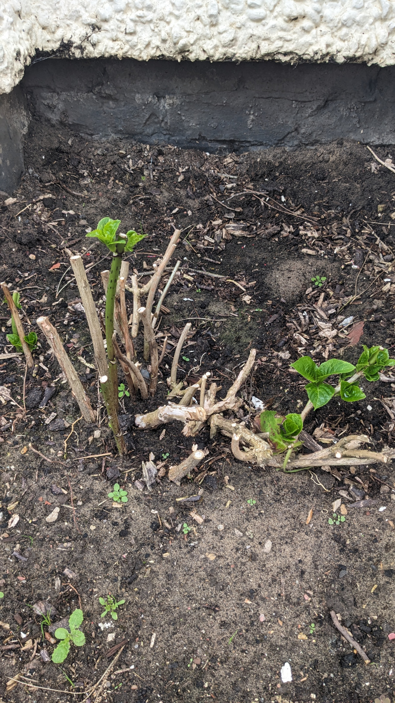Funny you mention hydrangea, as part of the overgrowth elsewhere there was a hydrangea which was trapped between two other shrubs. Basically a wirey woody mess which I had to cut right down to even get out. I moved it to a new location, watered it well and fresh new shoots. Only checked it after reading your post!