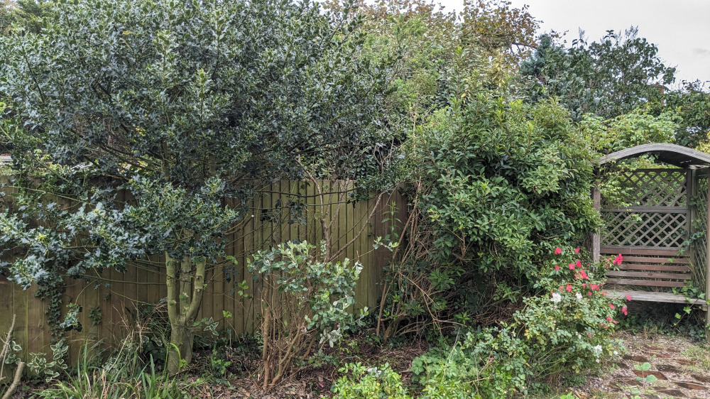 Bringing this one back to life again! I have removed what appeared to be some sort of self seeded tree which had grown against the fence for past few years with my trusty new pruning saw.