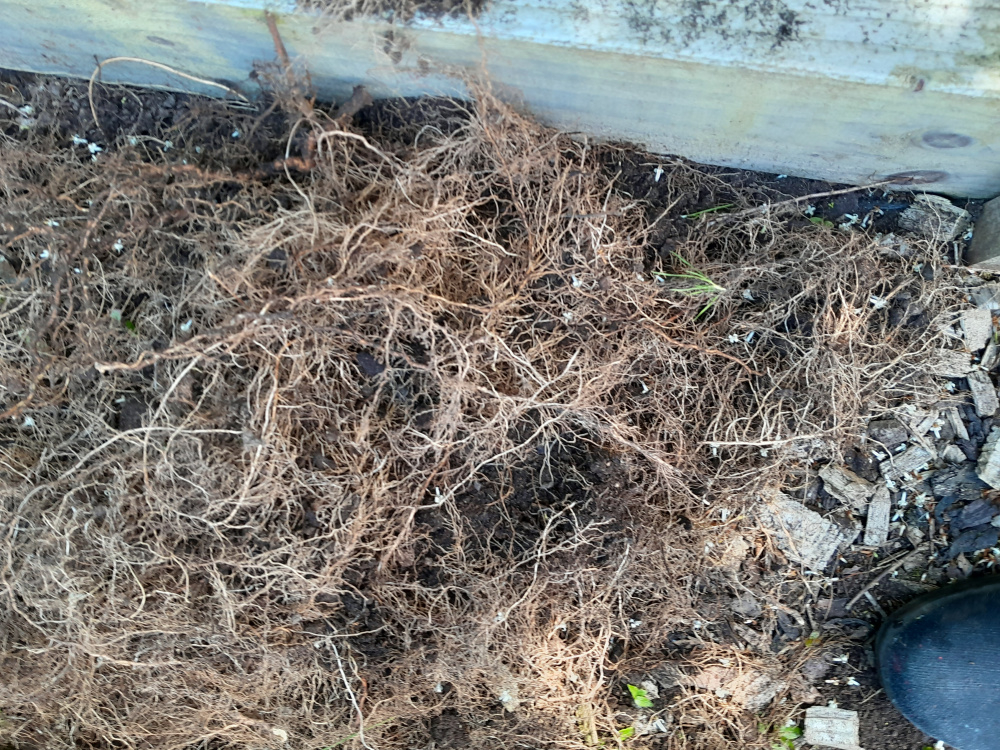 Anyone know what this root is have not seen any foliage just theses roots clogging the soil of my raised bed
