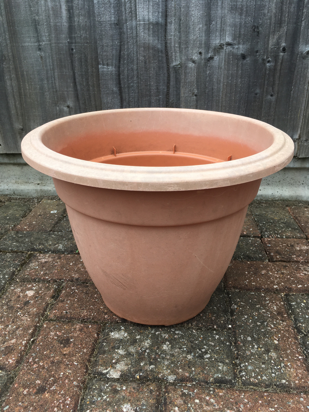 I could plant some in big pots like this one - about 33cm wide at the top and 30cm high, I guess one per pot. For people who don't have gardens to replant into.
