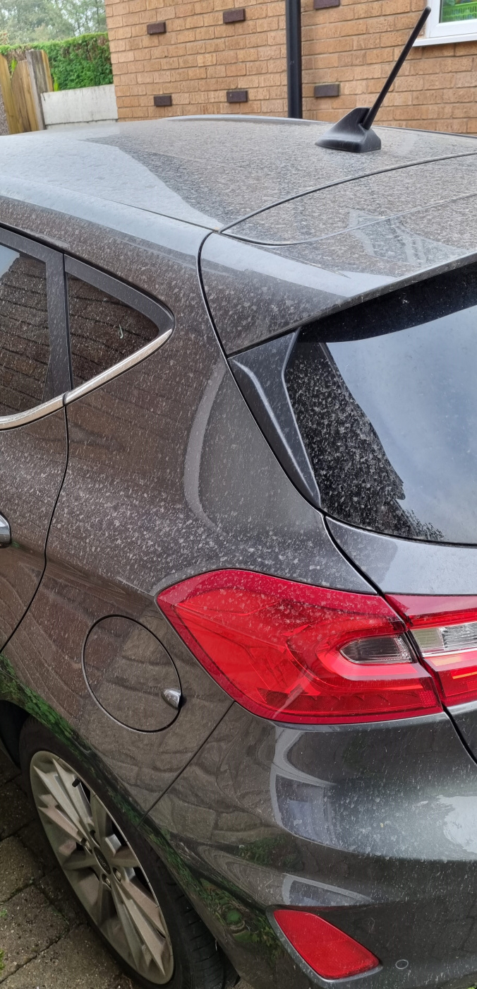I heard on the Beeb about the Saharan sand which had been coating everything yesterday as it was washed out of the atmosphere by the rain. My dustbins are all coated and this is what my poor car looks like: