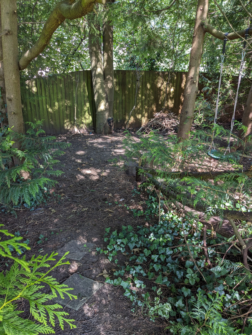 At the bottom of our garden there is a row of Thuja trees with a space behind of approximately 4m deep to the back fence where there are some Sycamores (photo attached) and I'd like to create more of a woodland feel there but have no idea what plants (if any) will grow under these conditions?? Suggestions please!? We do get some dappled shade on a sunny day but the soil is dry and laden with Thuja needles (on Clay soil). Sycamore seeds however grow really well there! Also a little Ivy and Geraniums near the sunnier entrance/path. Also at the "garden side" of the Thuja row of trees there is a border where I'd like to plant some bulbs maybe (but not exclusively - all suggestions welcome) but am not sure what might grow there either due to the Thuja and shade - it borders a lawn. This faces South but is quite shady most of the day.