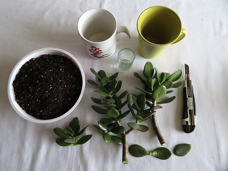 Jade plants can be propagated very easily from leaves and from stem/branch cuttings. Conventional wisdom says that you must let the wound on the cutting dry out for a few days before planting them, however, I have never done this.