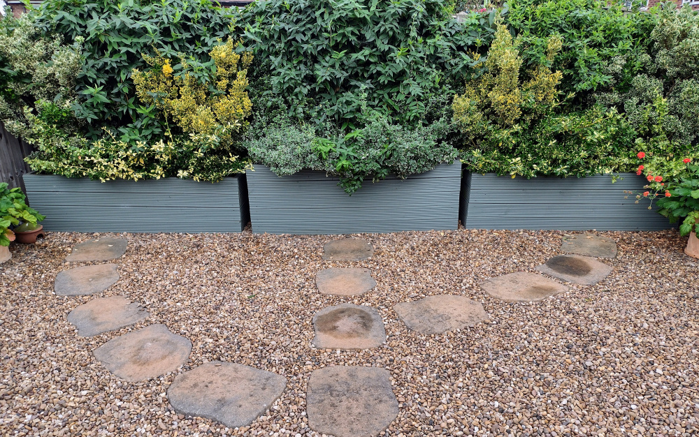This garden was typical- a fenced off section of slabs and gravel.