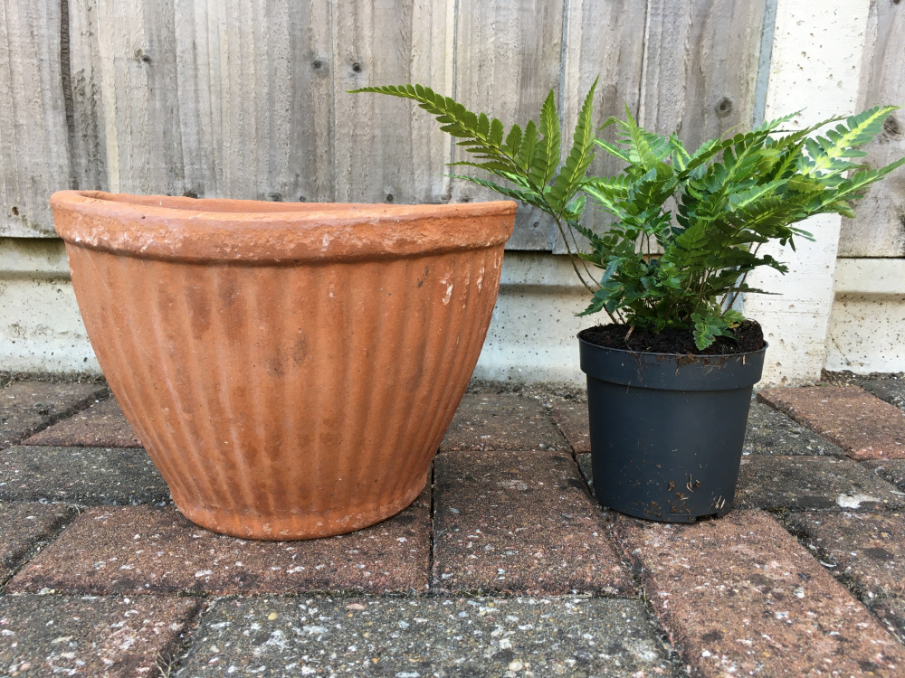 I'm thinking the pot might be rather small and too well draining, but I hope the pot isn't too small. I specfically got this fern for this location (the pot is mounted on the wall with a nail in a hole in the back), because it's so shaded there.