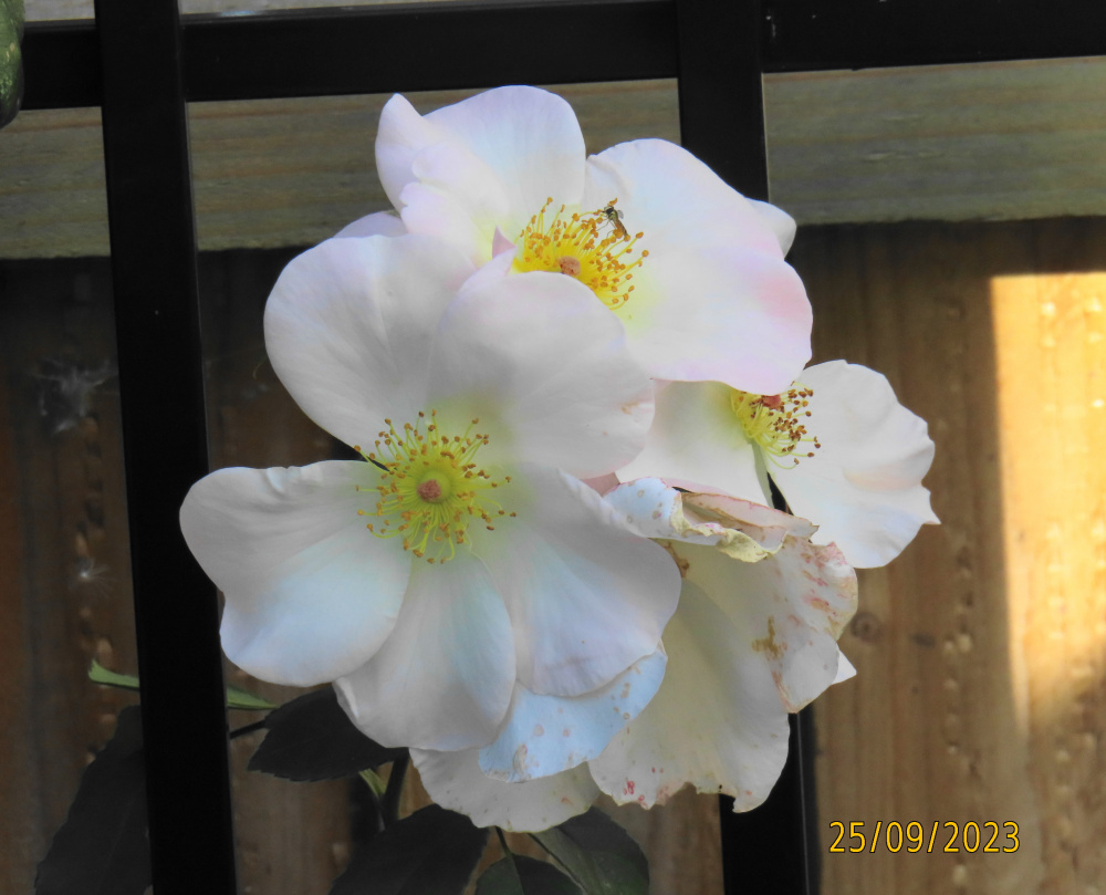 Yesterday whilst out, I came across a row of climbing Iceberg roses, about 8 feet tall and all in full flush, looking magnificent, if somewhat sparse with foliage..