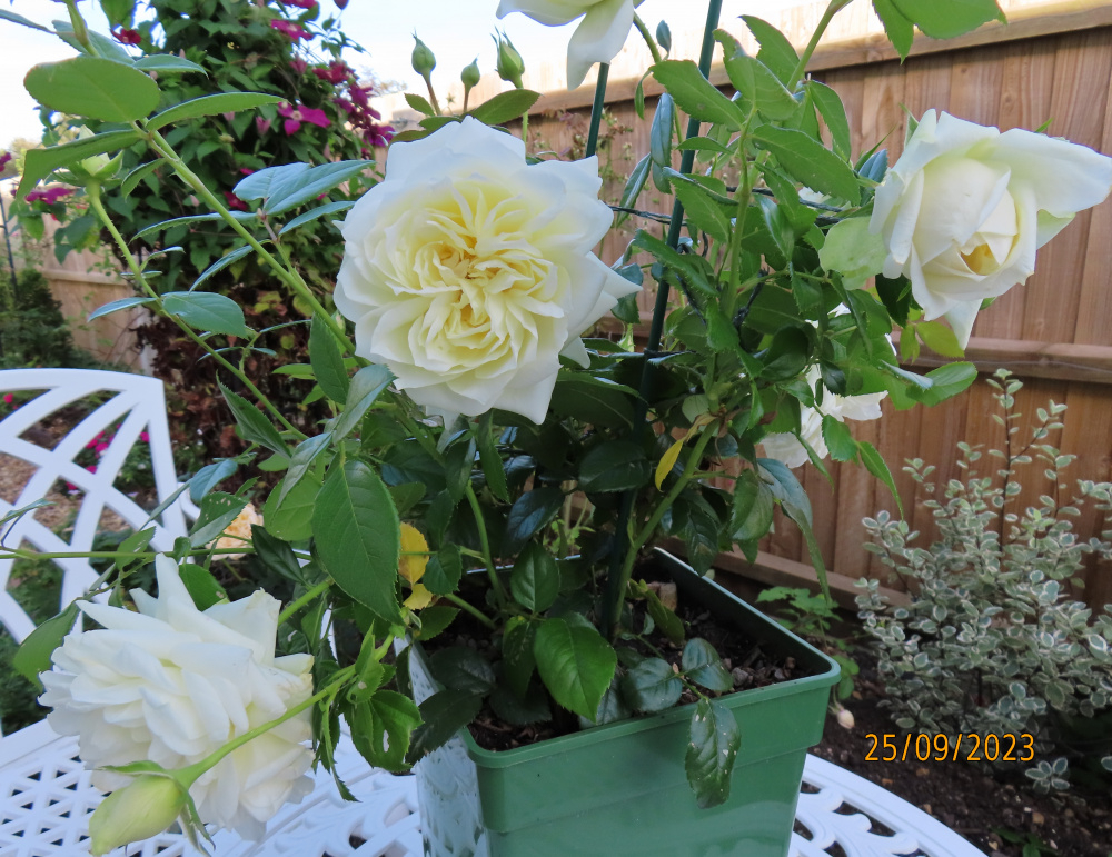 Yes, no need to concern oneself with rose replant from potted roses.. scrubbing not necessary Peter.. Yesterday whilst out, I came across a row of climbing Iceberg roses, about 8 feet tall and all in full flush, looking magnificent, if somewhat sparse with foliage..