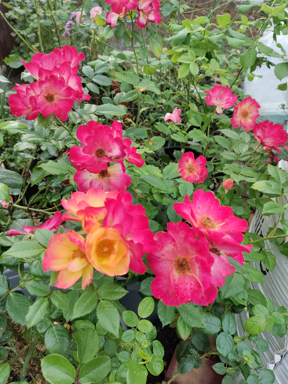 A perfect day weatherwise today. Here are some blooms that have opened after the weather extremes we've had Chippendale, this has very deep colouring in cooler temps.Pink Martini, yes the name lured me in too.Atypical Olivia Rose Austin, this is very potbound and will be sorted soon.Heidi KlumEasy Does It, my husband's favourite, so I keep it. At least it's easy and a good doer My favourite, Odyssey