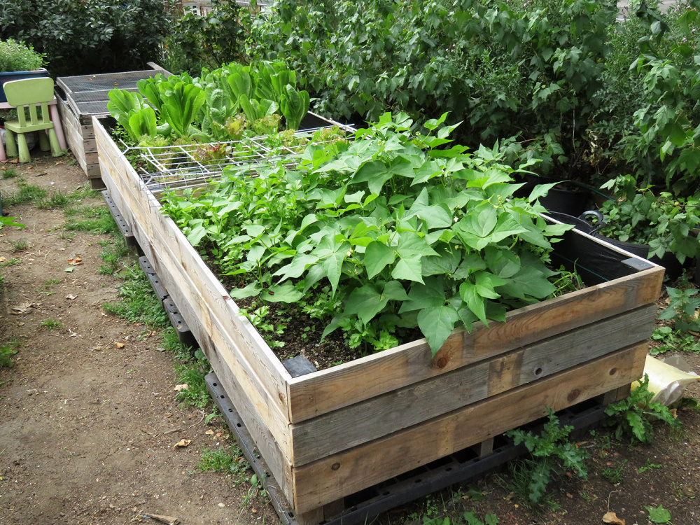 In previous years, I built the large pallet wood planters from 100% recycled materials. This included old plastic compost bags used for the lining and the nails extracted from the pallets (300+ nails per planter, each of which had to be manually straightened before use).