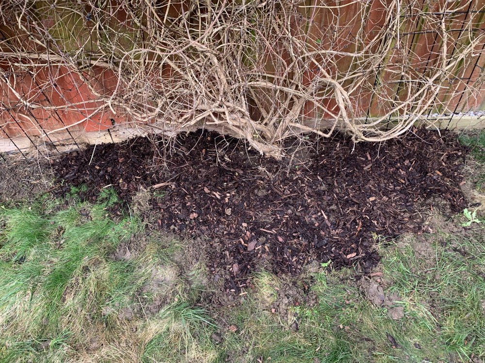 The mulching looks OK. Next job is the pruning. Honeysuckles are pretty tough snd it should grow back with new green growth. I once cut down a huge and tatty one to about a foot tall and it grew back looking healthier than before.