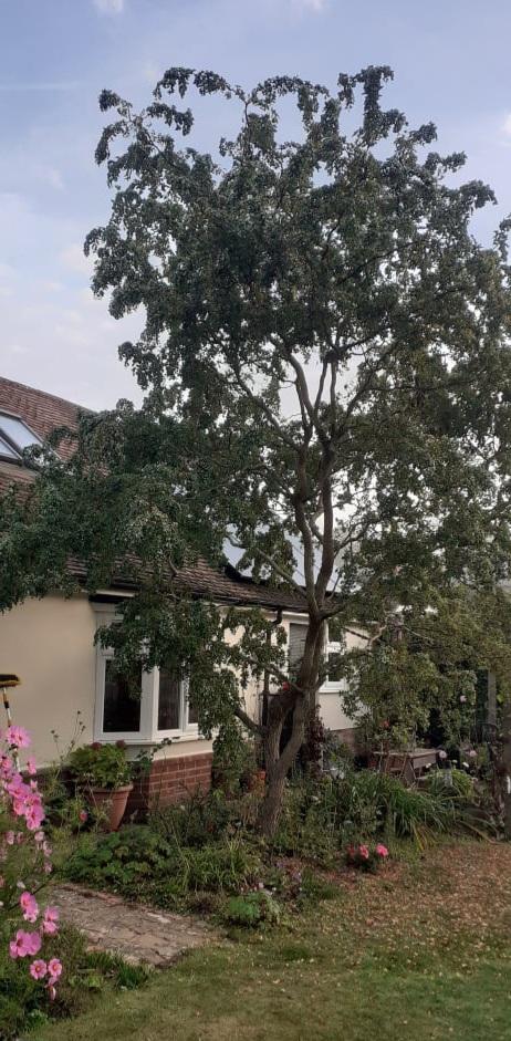 I'm afraid I think you should ask for advice from a tree surgeon. It looks as though it will grow too big to be that close to a house.