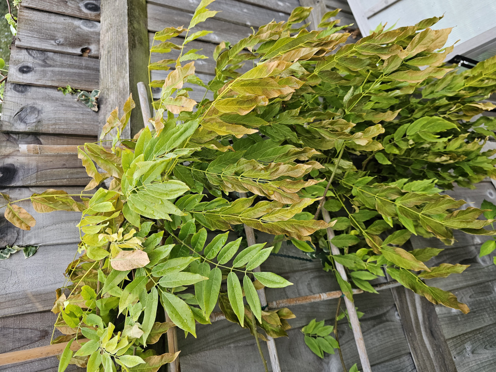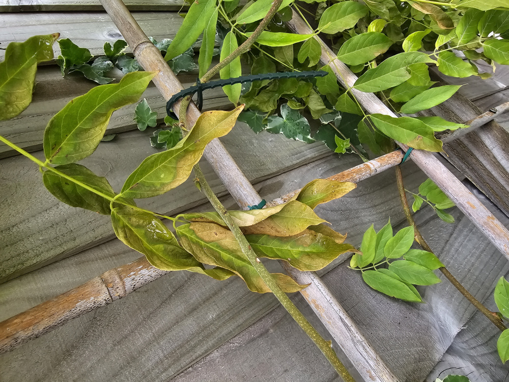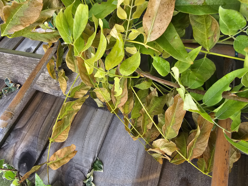 Is it in a pot or planted close up against a fence? Both of these situations could lead to water restriction as not enough rain will get to them. If it's in a pot it's entirely reliant on you for food and water as potting composts only have food for 90 days max.