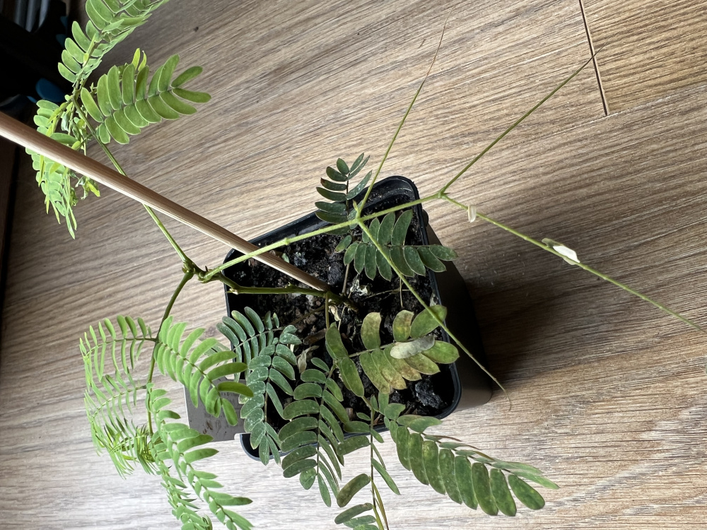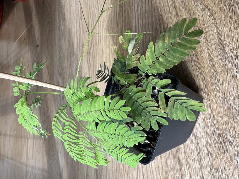 Albizzias are big trees, up to 40 metres tall, that like to be planted outside in the sun. When young they need protecting from frost. Yours looks very young, but they grow fast when happy. They are pretty when they flower, fluffy pink flowers, but it makes a bit of a mess on the lawn when the flowers finish and drop off.