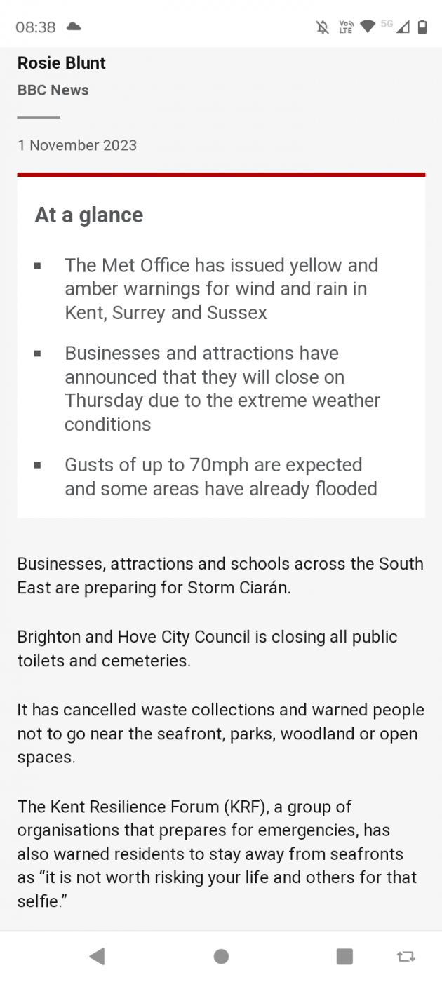 I am way down south in the Amber alert area. There is not even the tiniest breeze at the moment. Still as anything, sun's out, the sky a milky blue. Yes, it was gusty overnight, but nothing unusually fierce.