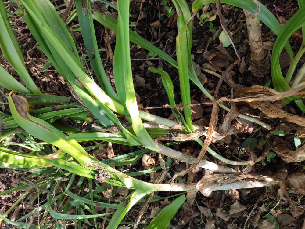 @oliviasmart22593 It should be easy to give a full ID now just move away some soil and see if you have bulbs. Agapanthus is a thick fleshy root and are Rhizomes. The soil in this area is mostly clay which may be why they are not happy here in the winter.