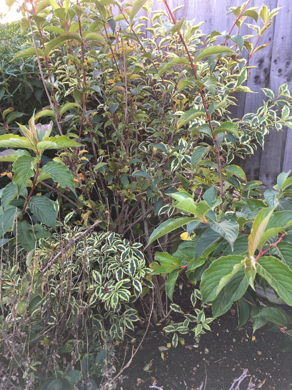 I have a weigela that looks messy and spindly, with long thin branches and a lot of bare wood underneath. It has both green and variegated leaves.