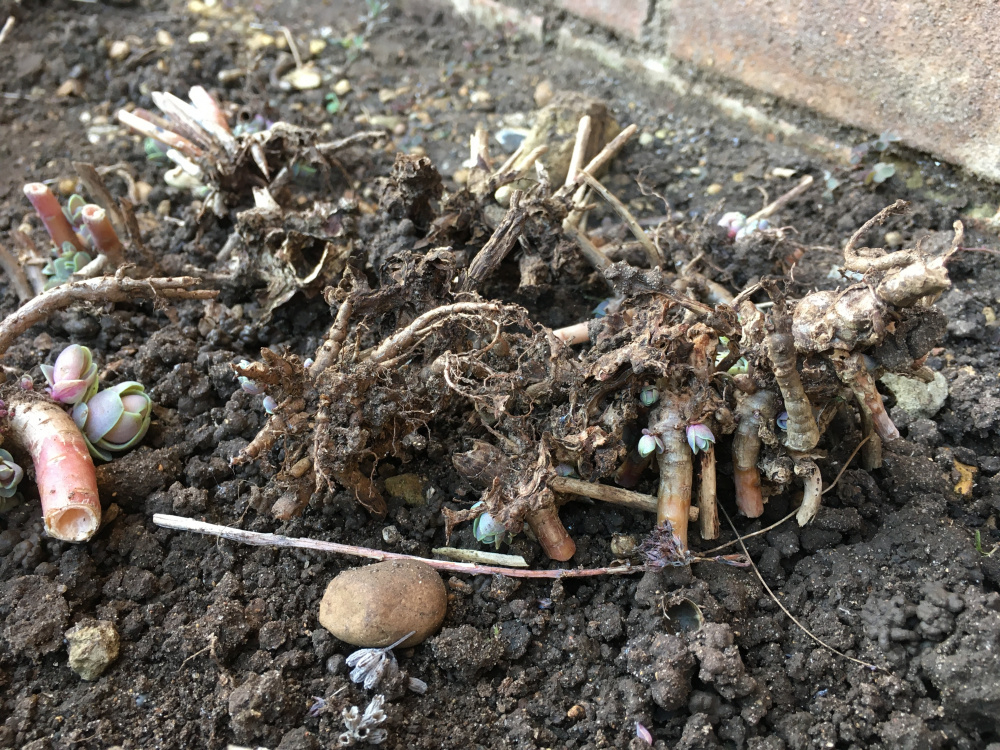 Sedum has all broken up at the bottom, ejected by the soil - what to do