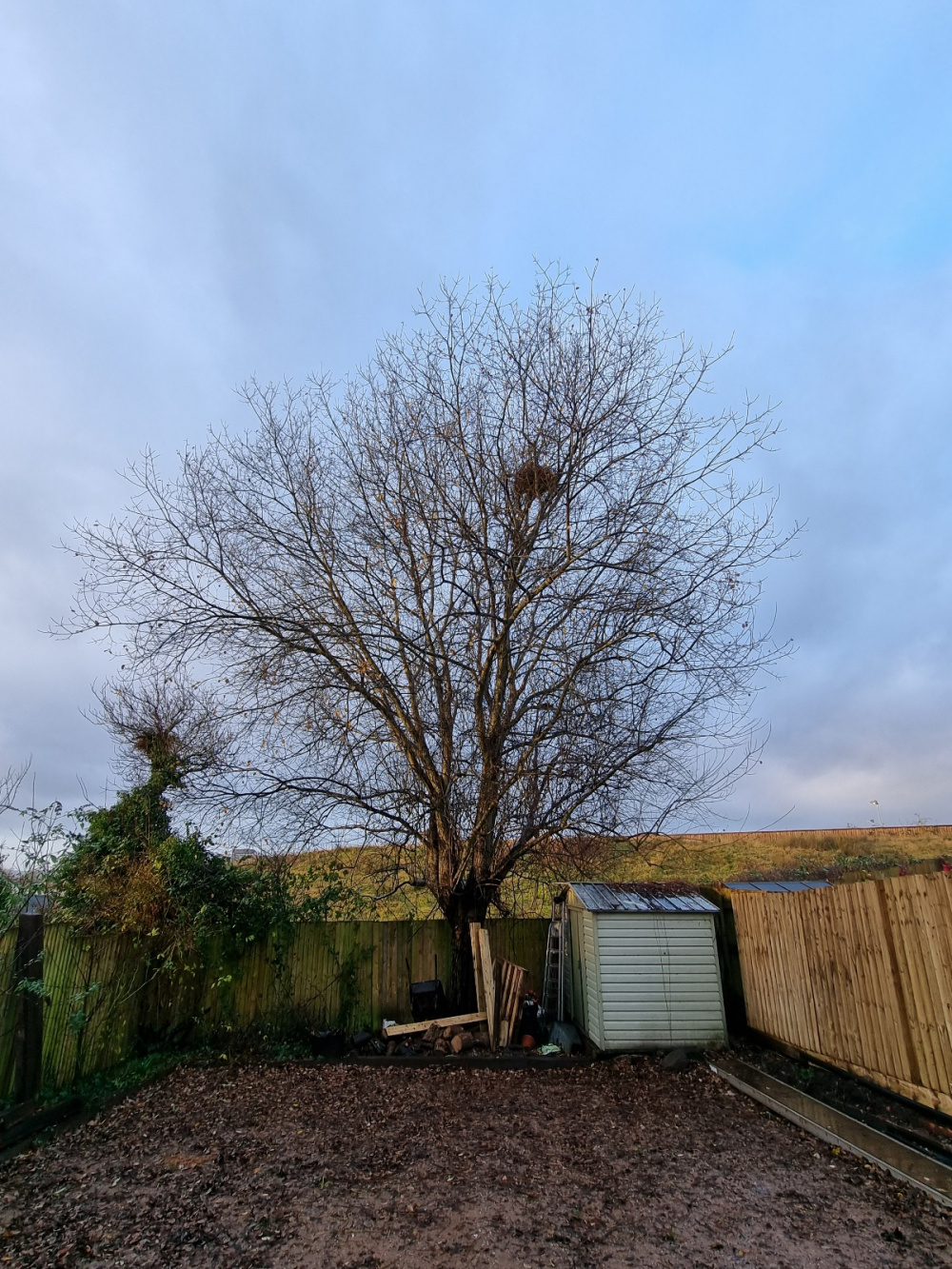 If you're wondering why the ground is mud at the moment, it's because we've had it levelled during building works... Another good reason to get the tree work done now.