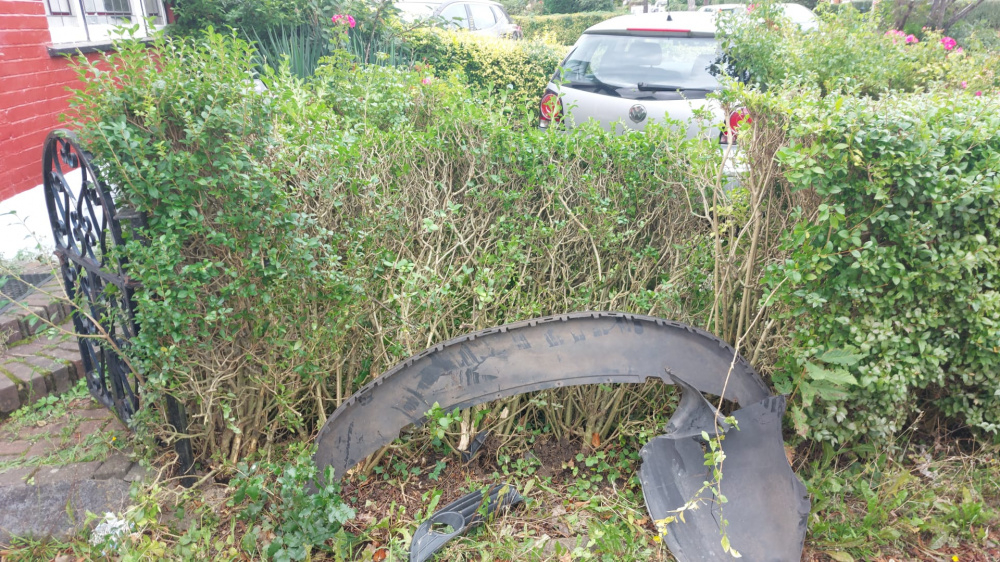 I am all at sea here. A neighbour has launched his car through my tenanted property's hedge and neatly flattened it in the car's path. The hedge is mature.