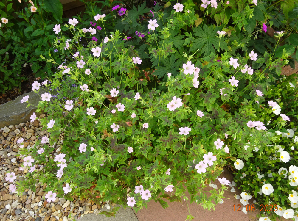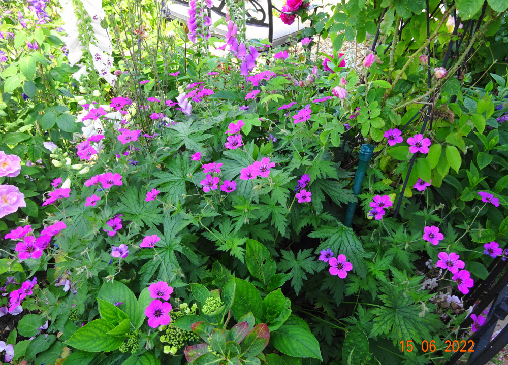Geranium 'Patricia'.. a fabulous plant, flowers all summer. I find that it's best in a shadier, moist site and just left alone without cutting back midsummer.. I also have it in sun too..