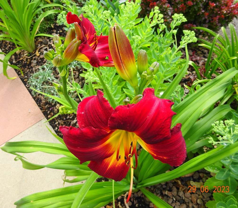 Hemerocallis 'Claudine'.. a sumptuous, dazzling red with yellow throat..