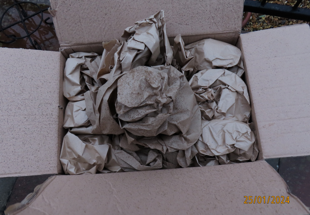 My goodie box arrived today. Wrapped in recyclable paper too. I loathe that polystyrene stuff some nurseries use..