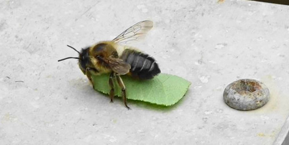 ..leaf cutter bee with a rose leaf..